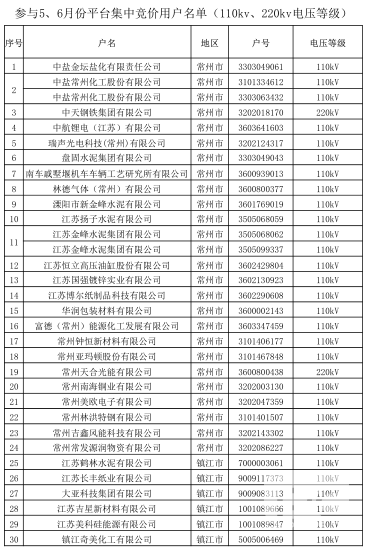 江蘇2017年5、6月大用戶平臺(tái)競(jìng)價(jià)交易用戶準(zhǔn)入清單(附名單)