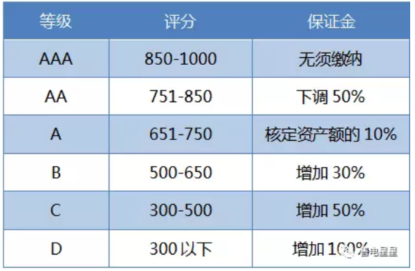 信用等級與保證金繳納額掛鉤: