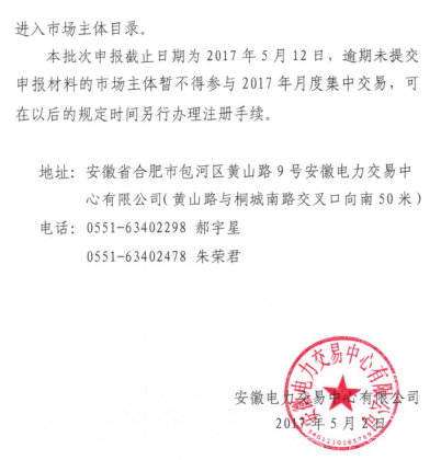 安徽電力交易中心日前發(fā)布了《關(guān)于開(kāi)展2017年第二次市場(chǎng)主體準(zhǔn)入工作的公告》,符合準(zhǔn)入條件的售電公司、新增電力用戶、新增發(fā)電企業(yè)可以向省電力交易中心、各地市發(fā)改委、省能源局提出申請(qǐng)。詳情如下:附件:售