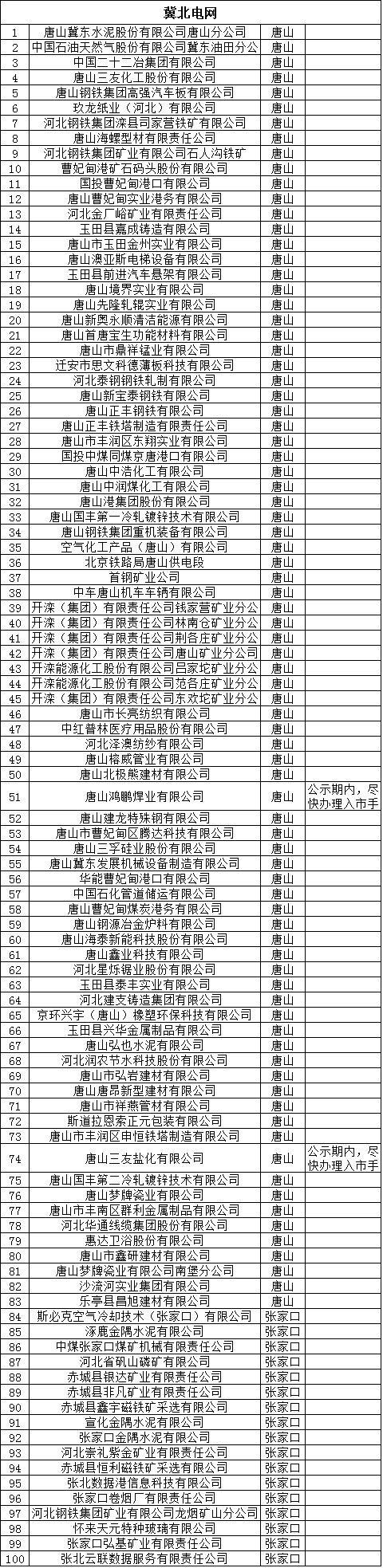 河北2018年擬參與直接交易的535家電力用戶及取消交易資格的12家電力用戶公示名單