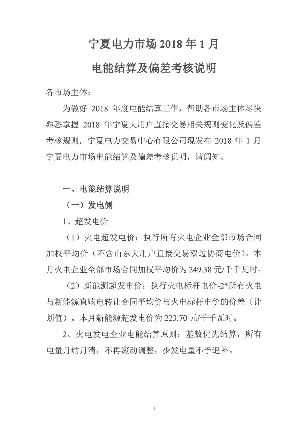 寧夏電力交易中心日前發(fā)布《寧夏電力市場2018年1月電能結算及偏差考核說明》指出: