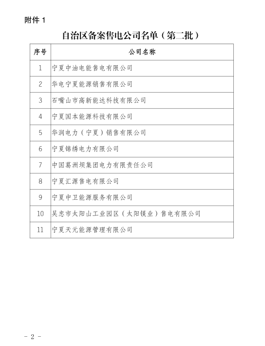 寧夏第二批售電公司備案公示名單