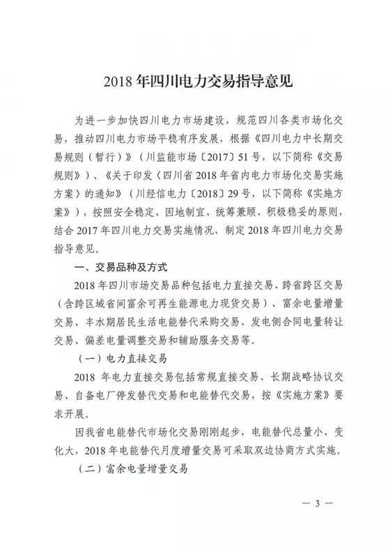 2018年四川電力交易指導(dǎo)意見發(fā)布:增加新交易品種