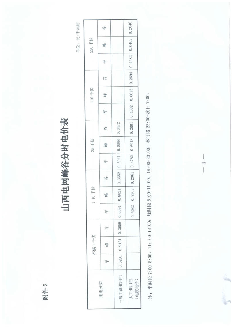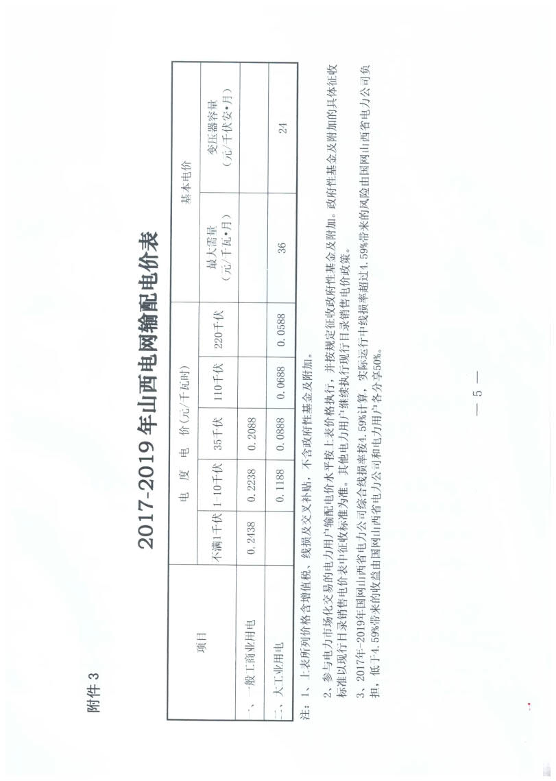 山西省發(fā)改委日前發(fā)布了《關(guān)于電力行業(yè)增值稅稅率調(diào)整相應(yīng)降低我省一般工商業(yè)用電價(jià)格的通知》,自2018年5月1日起,山西省一般工商業(yè)用電銷售電價(jià)降低1.85分/千瓦時(shí),山本電網(wǎng)一般工商業(yè)用電輸配電價(jià)同步降低1.85分/千瓦時(shí)。