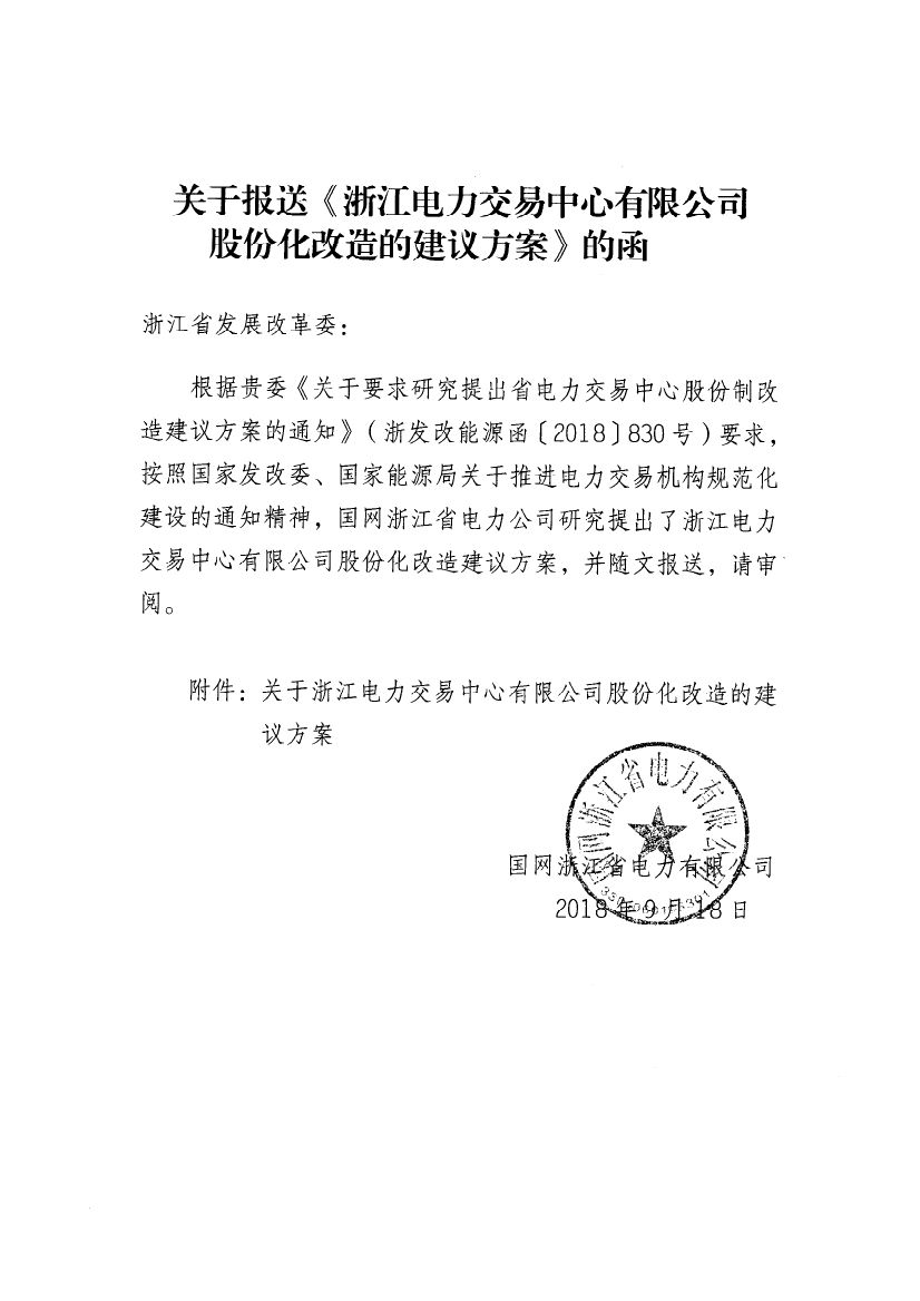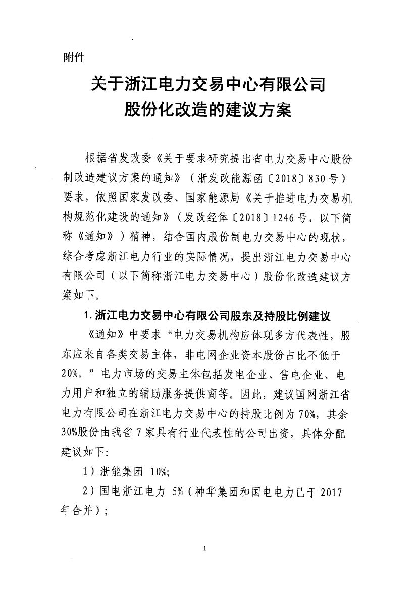 附件:《浙江省電力交易中心有限公司股份化改造的建議方案》