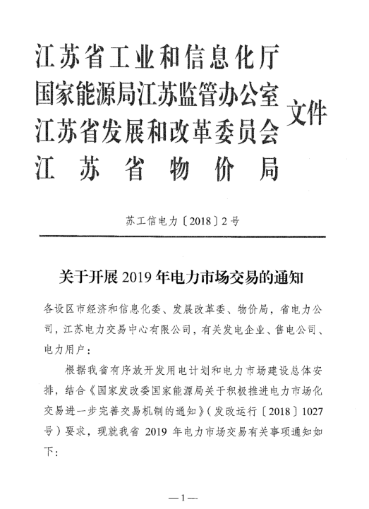 全文|3000億千瓦時!江蘇2019年電力市場交易規(guī)模確定 注冊綁定截止時間12月15日