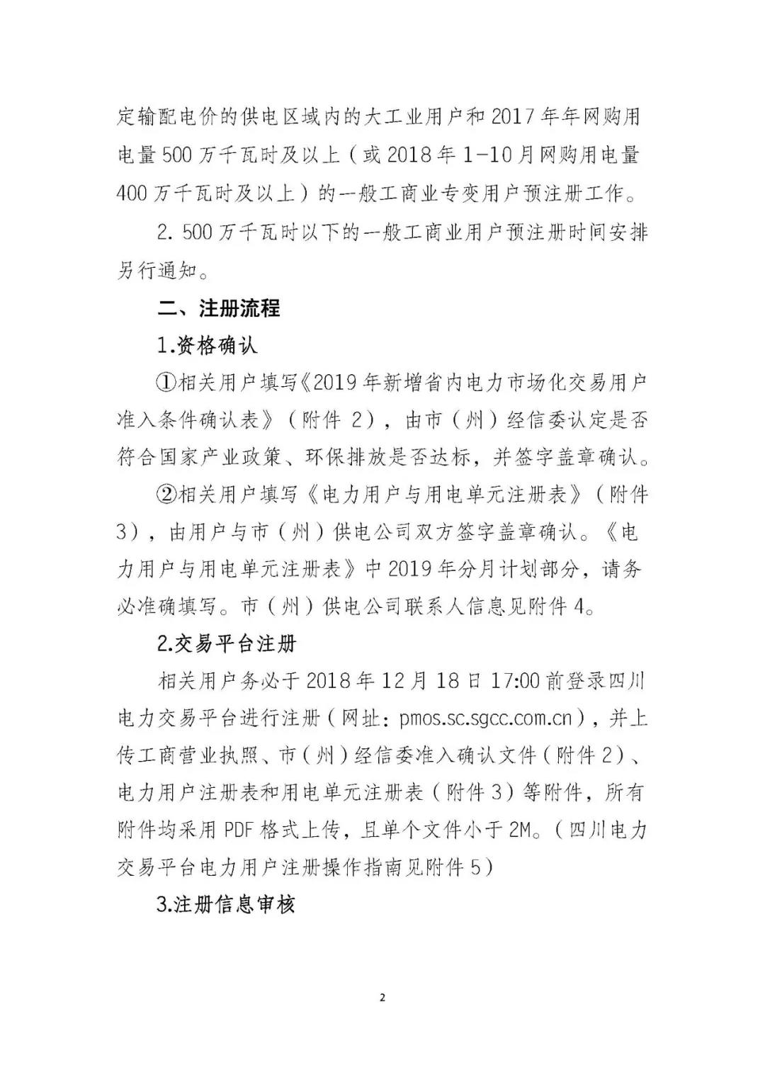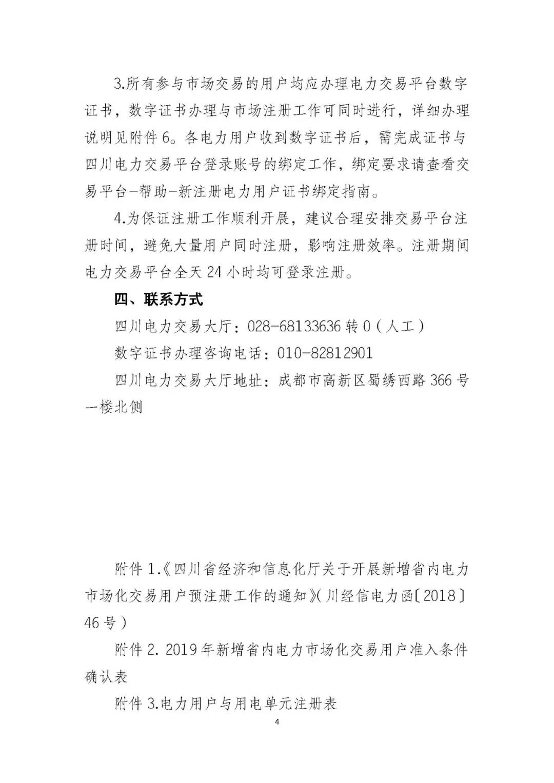 按照《四川省經(jīng)濟和信息化廳關于開展新增省內(nèi)電力市場化交易用戶預注冊工作的通知》(川經(jīng)信電力函〔2018〕46號)(附件1)要求,對2019年新增市場化交易用戶實行注冊制。四川電力交易中心現(xiàn)啟動2019年預注冊工作