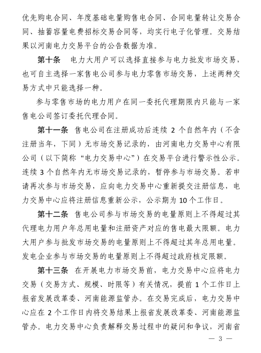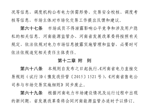 河南省日前發(fā)布了《河南省電力市場交易規(guī)則(試行)》