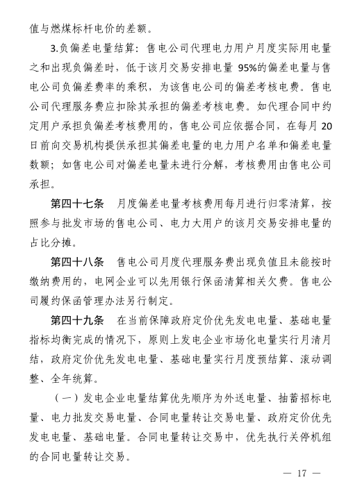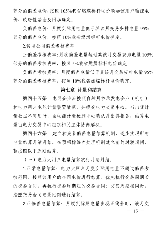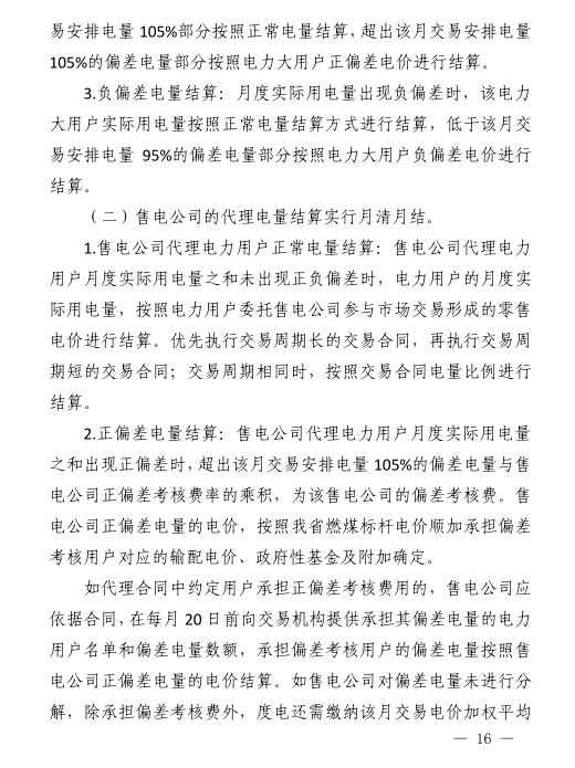 參與批發(fā)交易的售電公司、電力大用戶月度偏差電量占其該月交易安排電量在±5以外的電量,±5%以內(nèi)(含±5%)的部分免于考核??己藢ο鬄閰⑴c批發(fā)交易的電力大用戶、售電公司。