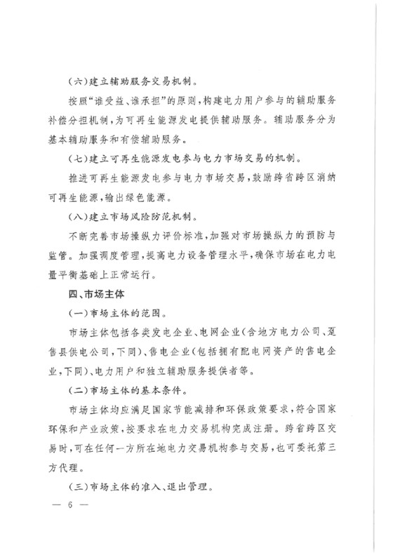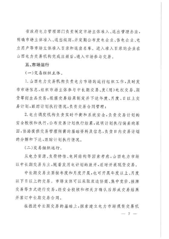 開(kāi)展省內(nèi)中長(zhǎng)期交易和現(xiàn)貨交易;省外電力市場(chǎng)主要依托北京電力交易中心電力交易平臺(tái)和山西電力交易平臺(tái),開(kāi)展跨區(qū)跨省交易,并落實(shí)國(guó)家計(jì)劃及地方政府協(xié)議。具體文件如下:
