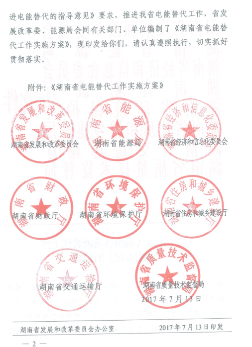 由湖南省發(fā)改委、湖南省能源局、湖南省經(jīng)信委、湖南省財政廳、湖南省環(huán)境保護(hù)廳、湖南省住房和城鄉(xiāng)建設(shè)廳、湖南省交通運(yùn)輸廳、湖南省質(zhì)量技術(shù)監(jiān)督局八部委聯(lián)合下發(fā)的《湖南省電能替代工作實(shí)施方案》印發(fā)。