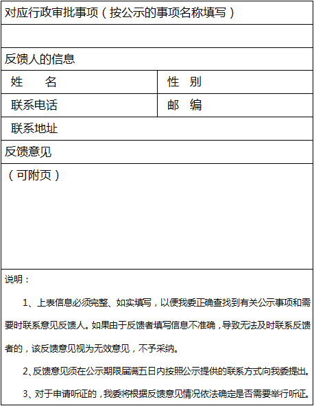 廣東省發(fā)展改革委行政審批前公示意見(jiàn)反饋表