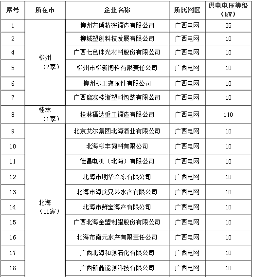 廣西電力市場化交易電力用戶準入公示名單(第十批)