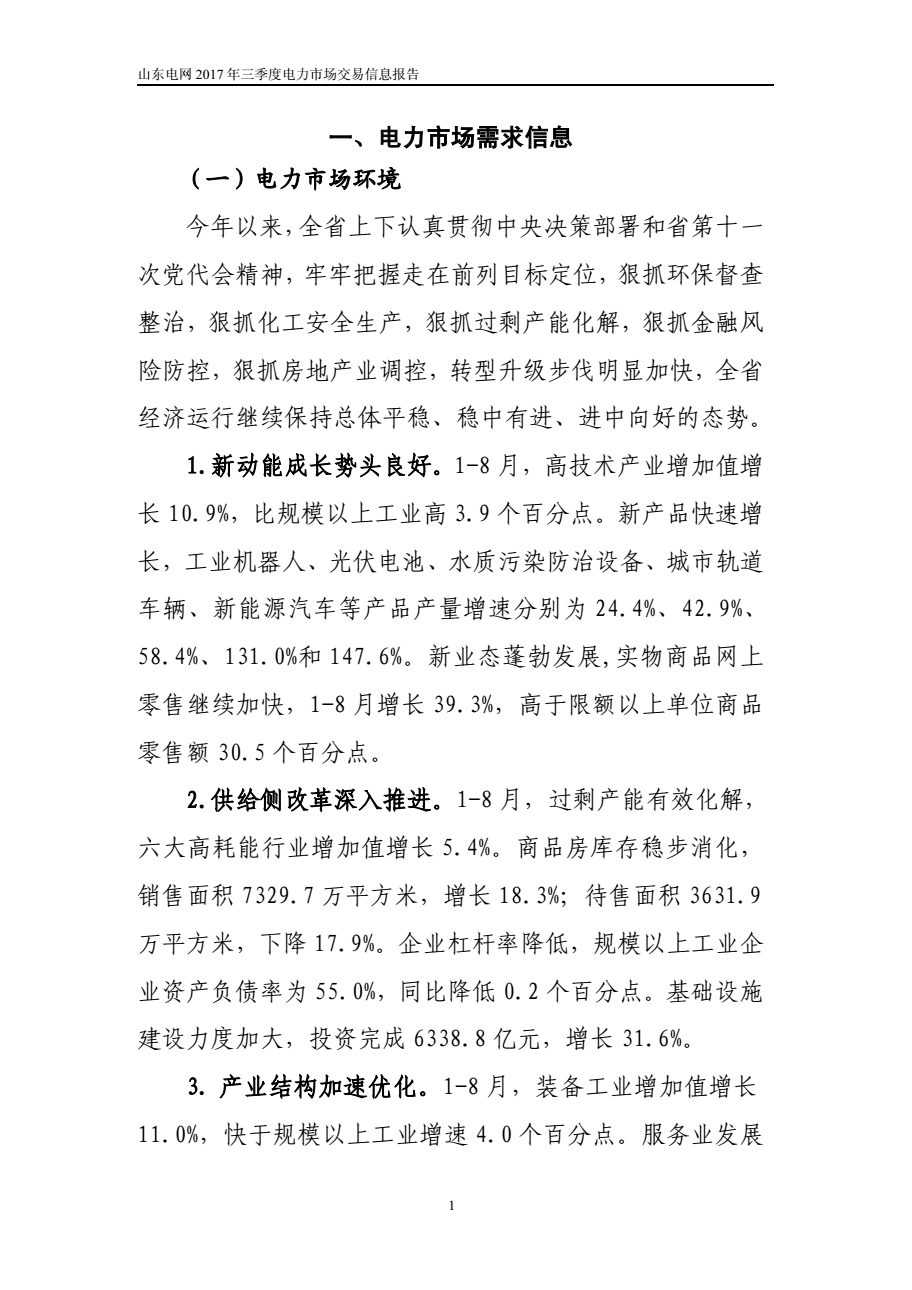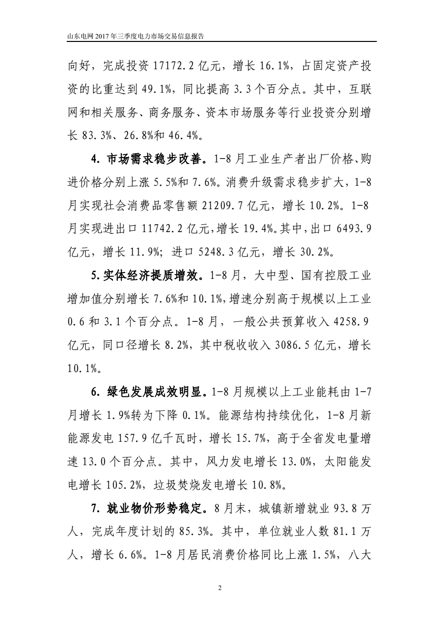 山東電網(wǎng)2017年三季度電力市場(chǎng)交易信息報(bào)告