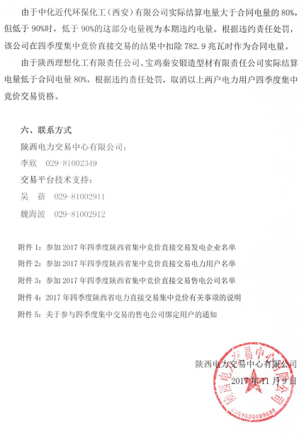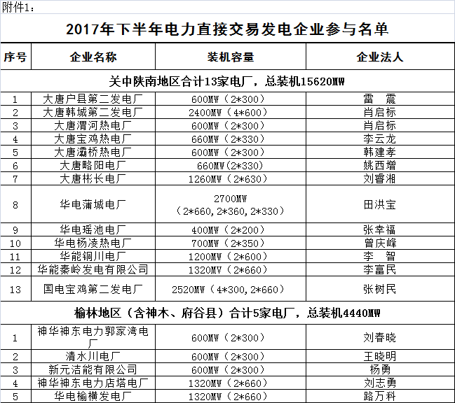 陜西發(fā)布2017年四季度電力用戶和發(fā)電企業(yè)集中競價直接交易通知