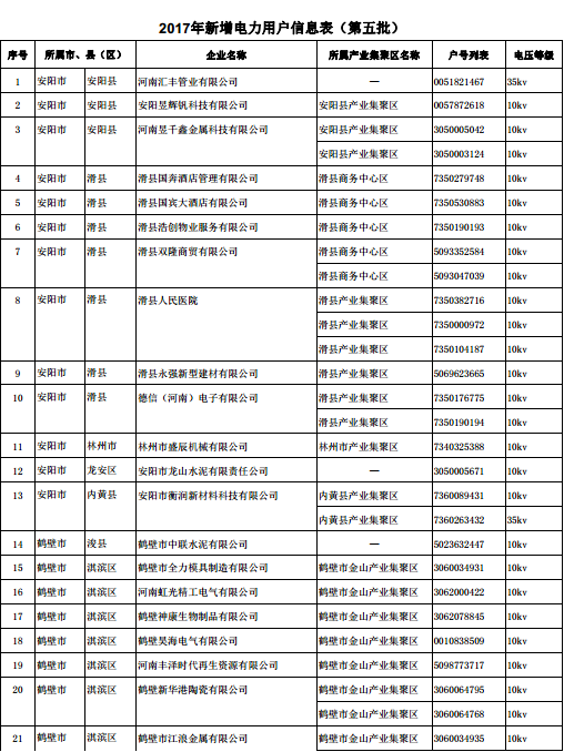 《2017 年河南省新增電力用戶名單公示(第五批)》(附311家電力用戶信息)