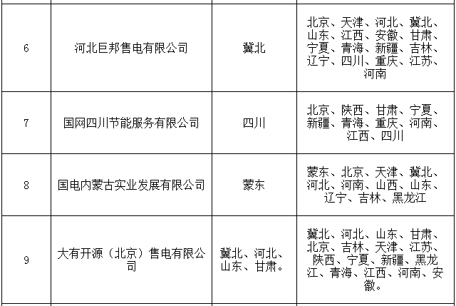 北京關(guān)于公示16家售電公司業(yè)務(wù)范圍變更的公告