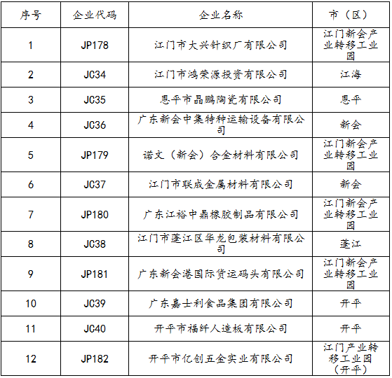 根據(jù)《廣東省經(jīng)濟(jì)和信息化委 廣東省發(fā)展和改革委 國(guó)家能源局 南方監(jiān)管局關(guān)于2017 年電力用戶參與市場(chǎng)交易相關(guān)事項(xiàng)的通知》(粵經(jīng)信電力函〔2016〕292號(hào))及《廣東省經(jīng)濟(jì)和信息化委 廣東省發(fā)展和改革委 國(guó)家能源局 南方監(jiān)管局關(guān)于支持有色金屬企業(yè)參與電力直接交易的通知》(粵經(jīng)信電力函〔2017〕58號(hào))要求,經(jīng)企業(yè)自愿申報(bào),屬地經(jīng)信部門初審,由我局審核上報(bào)省經(jīng)信委備案,認(rèn)定江門市大興針織廠有限公司等12家企業(yè)符合電力交易市場(chǎng)一般用戶準(zhǔn)入條件,現(xiàn)將有關(guān)企業(yè)名單通報(bào)(見附件)。