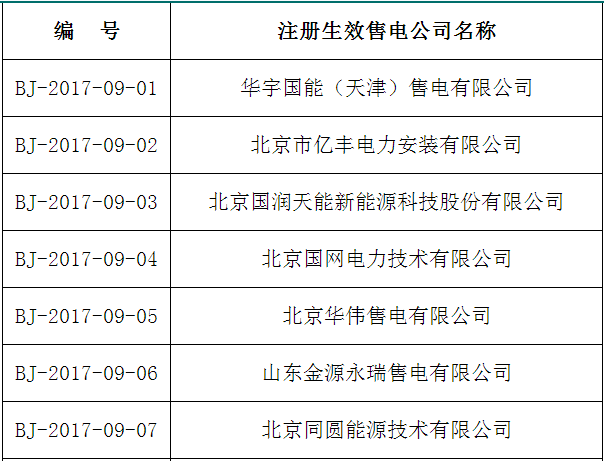 北京電力交易中心關(guān)于售電公司公示結(jié)果的公告