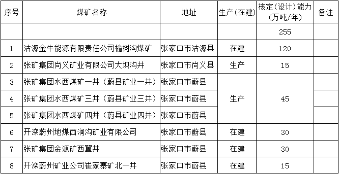 根據(jù)《國務(wù)院關(guān)于煤炭行業(yè)化解過剩產(chǎn)能實(shí)現(xiàn)脫困發(fā)展的意見》(國發(fā)〔2016〕7號)和《河北省人民政府關(guān)于印發(fā)河北省煤炭行業(yè)化解過剩產(chǎn)能實(shí)現(xiàn)脫困發(fā)展實(shí)施方案的通知》(冀政發(fā)〔2016〕18號)要求,結(jié)合我省煤炭產(chǎn)能置換指標(biāo)交易情況,現(xiàn)決定對近期退出的沽源金牛能源有限責(zé)任公司榆樹溝煤礦等8處煤礦、產(chǎn)能255萬噸/年進(jìn)行關(guān)閉前公示。