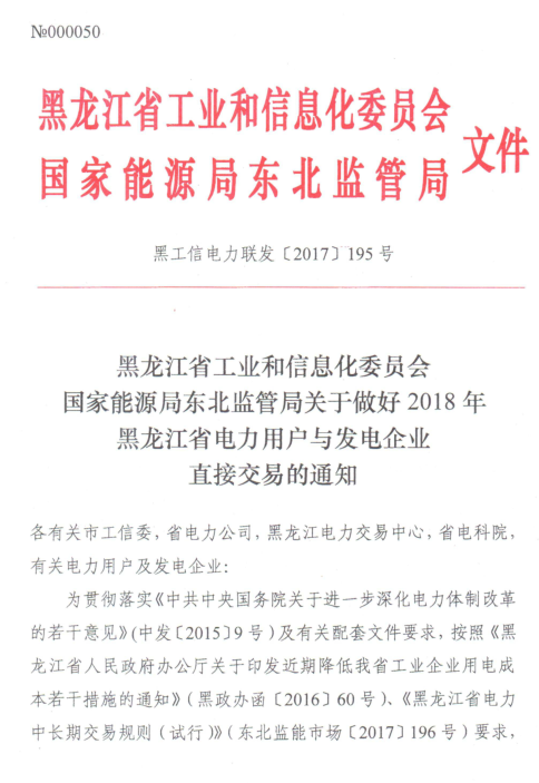 黑龍江工信委、國(guó)家能源局東北監(jiān)管局日前聯(lián)合發(fā)布了《關(guān)于做好2018年黑龍江省電力用戶與發(fā)電企業(yè)直接交易的通知》,通知中稱(chēng),2018年電力用戶與發(fā)電企業(yè)直接交易規(guī)模為120億千瓦時(shí)。參加2018年直接交易的用電企業(yè)