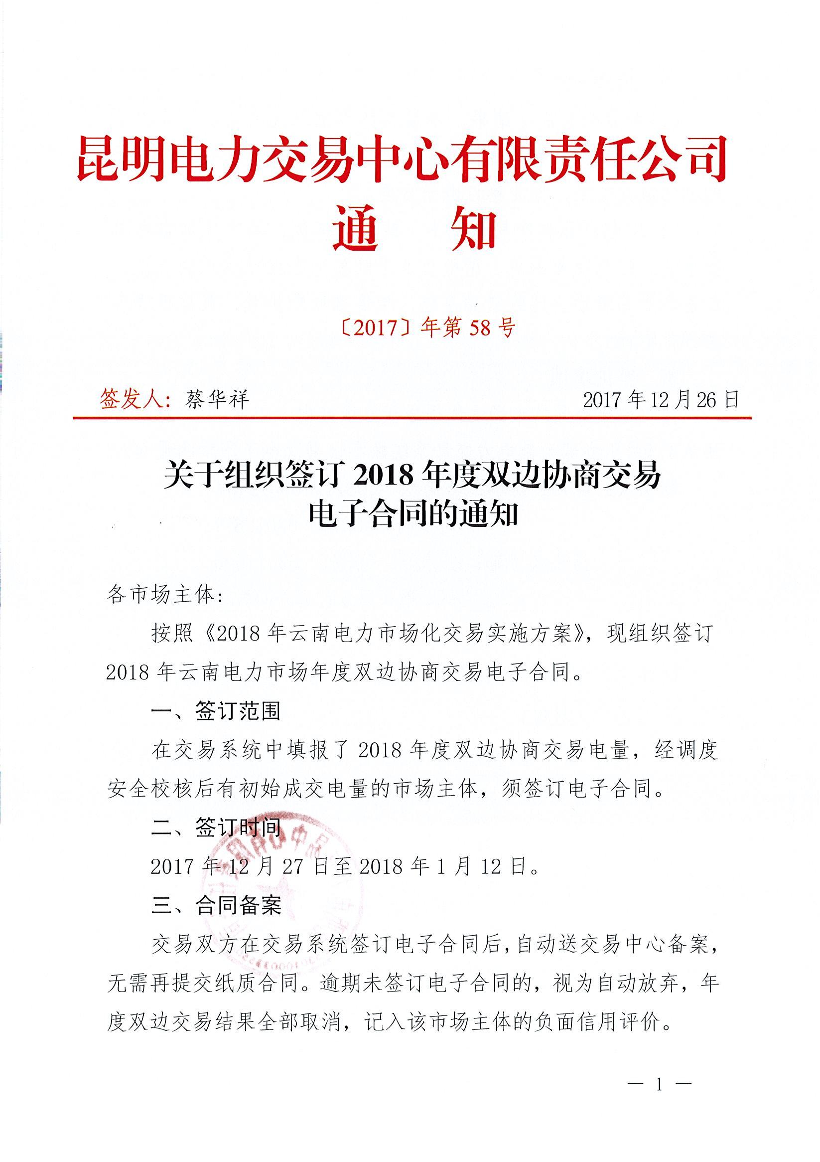 通知|云南組織簽訂2018年度雙邊協(xié)商交易電子合同