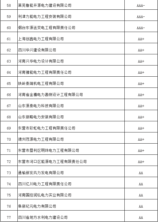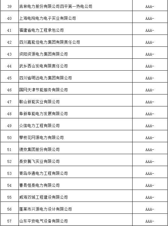 近日中電聯(lián)電力評(píng)價(jià)咨詢?cè)喊l(fā)布了《電力行業(yè)2017年信用企業(yè)評(píng)價(jià)結(jié)果公示》。其中共有101個(gè)電力企業(yè)信用等級(jí)為AAA,詳情如下: