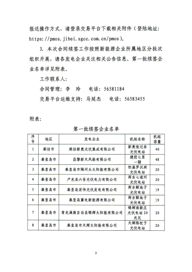 冀北第一批續(xù)簽購售電合同的8家新能源發(fā)電企業(yè)名單(附發(fā)電企業(yè)合同附件上傳操作文檔)