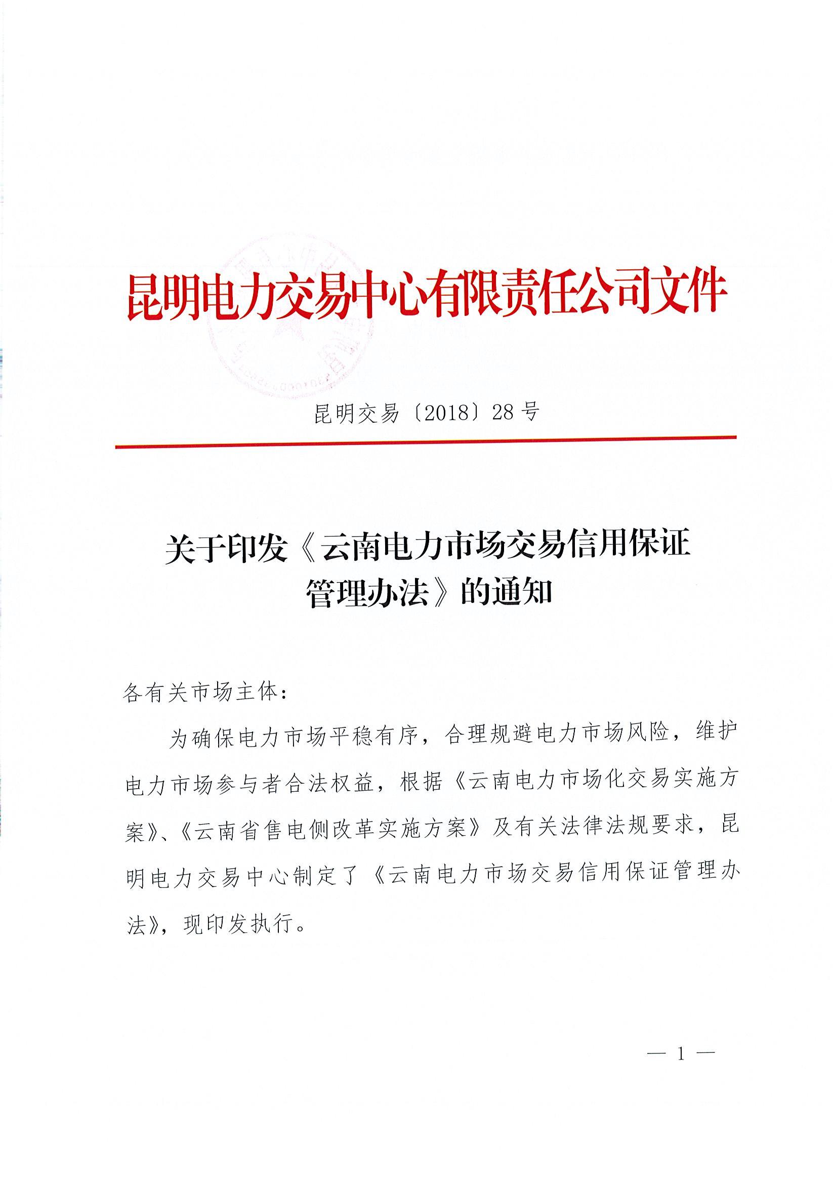 隨著電力市場(chǎng)建設(shè)的不斷推進(jìn),云南電力市場(chǎng)活躍度不斷提升,為強(qiáng)化市場(chǎng)風(fēng)險(xiǎn)防范能力,確保電力市場(chǎng)平穩(wěn)有序,合理規(guī)避風(fēng)險(xiǎn),維護(hù)電力市場(chǎng)參與者合法權(quán)益,強(qiáng)化公平、公開(kāi)、公正的電力市場(chǎng)運(yùn)營(yíng)能力,更好的為電力市場(chǎng)建設(shè)和市場(chǎng)主體服務(wù)。根據(jù)《云南電力市場(chǎng)化交易方案》、《云南省售電側(cè)改革實(shí)施方案》及有關(guān)法律法規(guī)要求,昆明電力交易中心制定了《云南電力市場(chǎng)交易信用保證管理辦法》。
