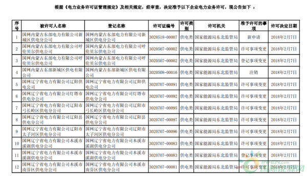 3月14日,國(guó)際能源網(wǎng)從國(guó)家能源局獲悉,國(guó)家能源局發(fā)布了《2018年電力業(yè)務(wù)許可公告》。就77家電力公司的電力準(zhǔn)予許可的事項(xiàng)發(fā)布公告,