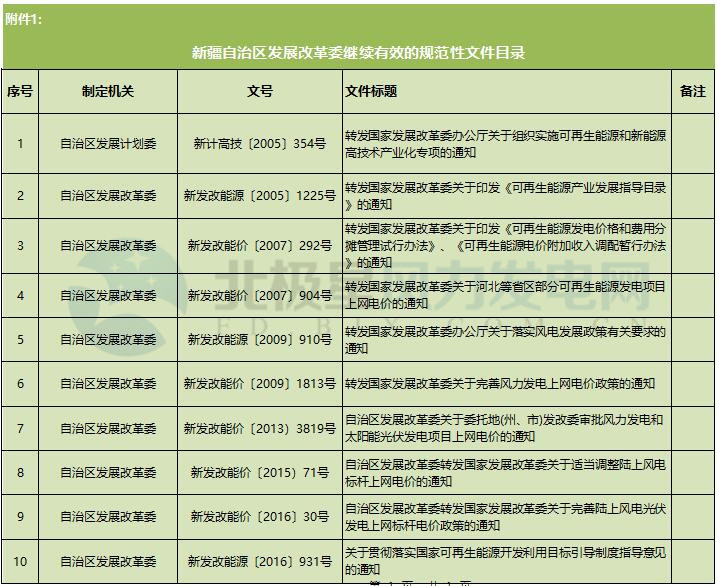新疆發(fā)改委2018年第3號公告:10個風電相關(guān)規(guī)范性文件繼續(xù)有效