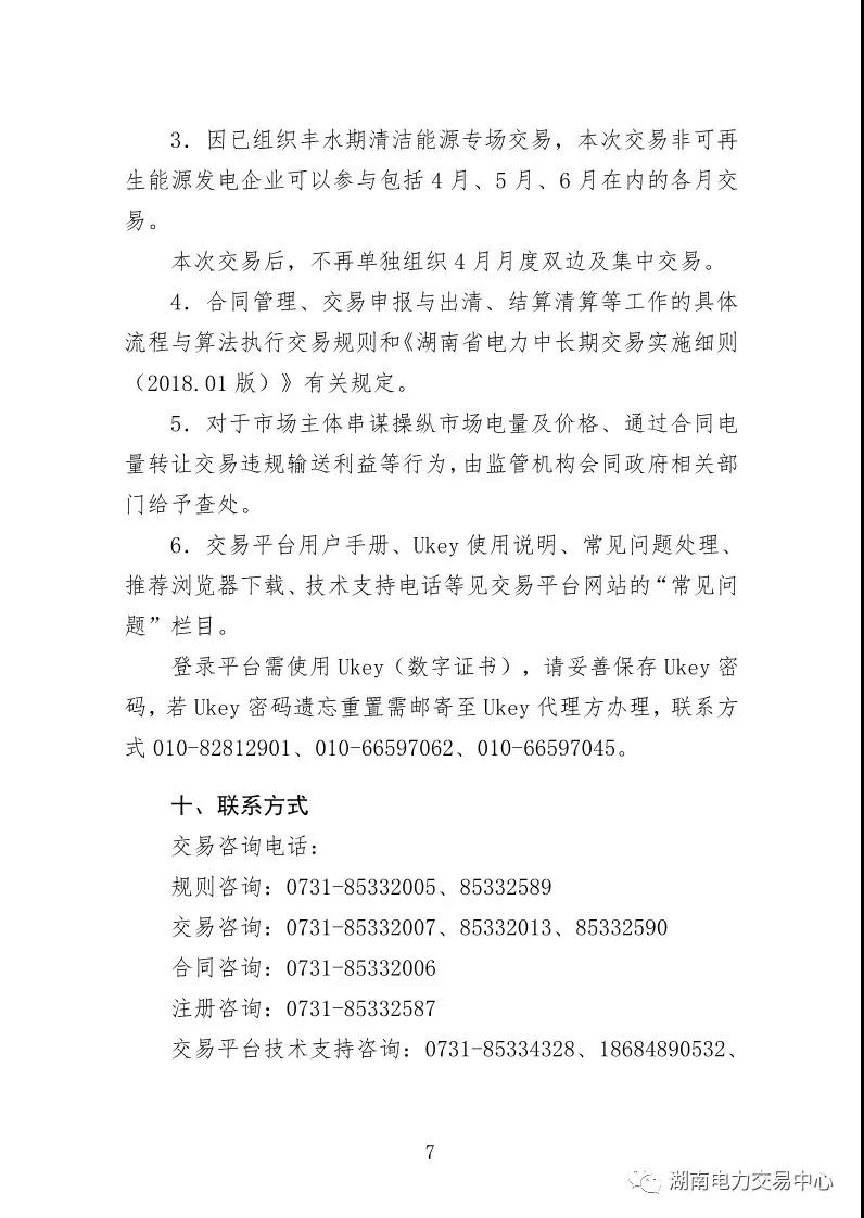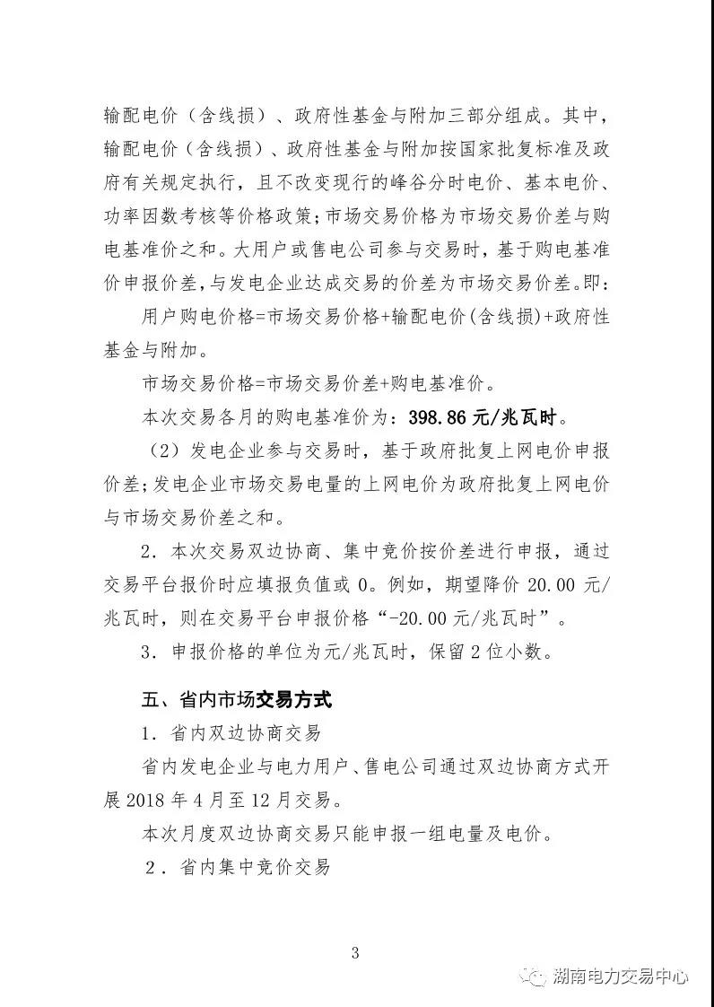 湖南電力交易中心日前發(fā)布了《關(guān)于2018年4-12月電力市場(chǎng)交易的公告》,公告中稱,本次交易電量對(duì)應(yīng)的周期為2018年4月-12月,按月申報(bào)并進(jìn)行