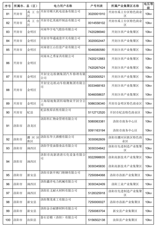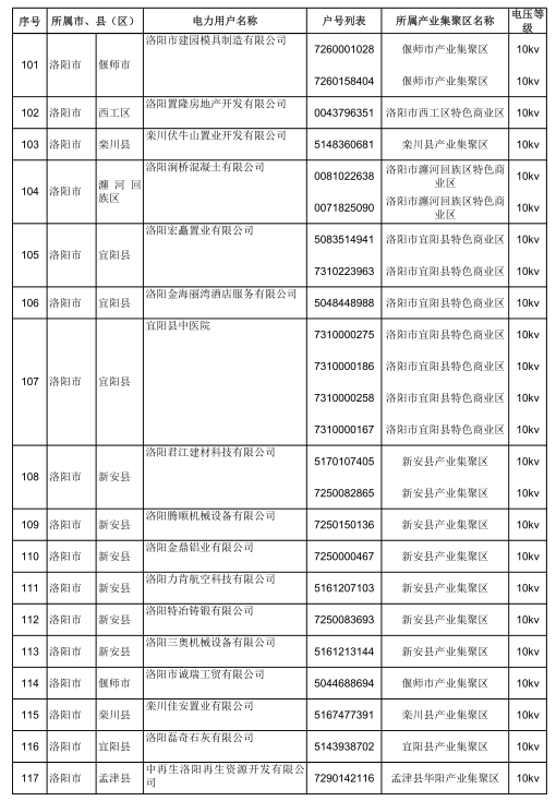 河南2018年第三批準入345家電力用戶全名單(具備交易資格)