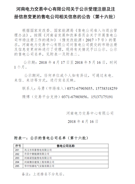 河南新公示6家售電公司 另有7家售電公司通過公示