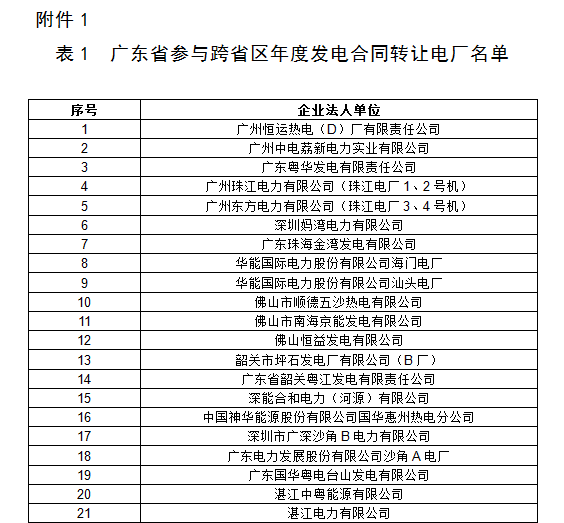附件1、廣東和云南可參與年度發(fā)電合同轉(zhuǎn)讓交易的發(fā)電企業(yè)名單