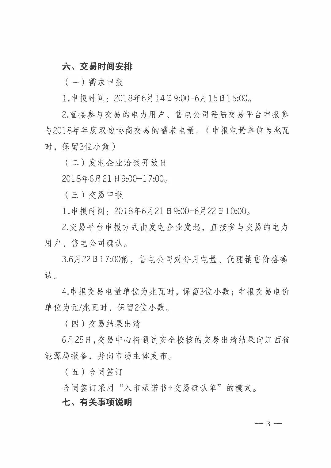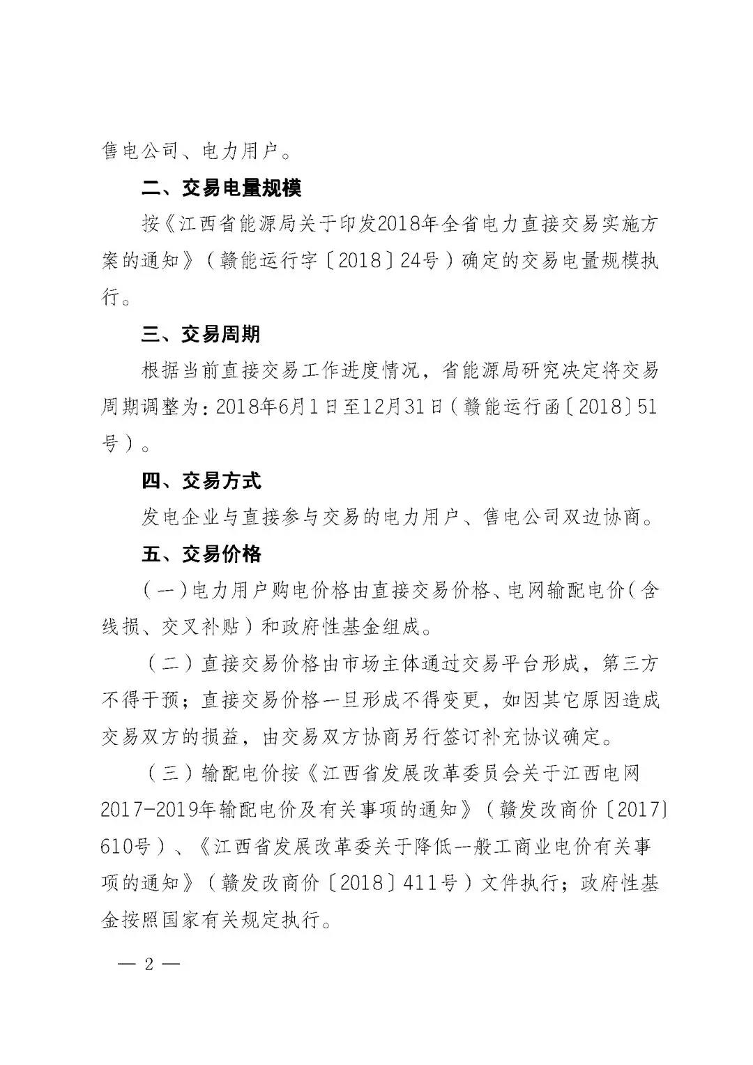 江西省2018年年度電力直接交易(雙邊協(xié)商)6月14日開始申報