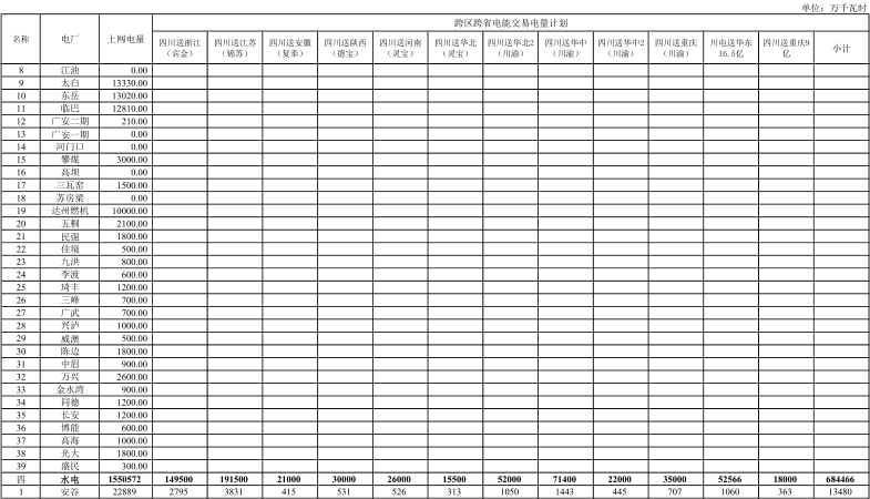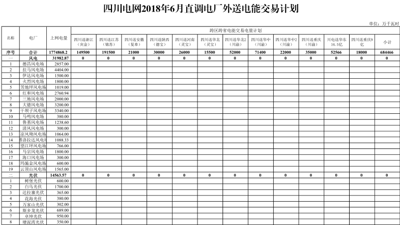 四川2018年6月外送電量計劃轉(zhuǎn)讓交易6月20日展開(附四川電網(wǎng)2018年6月電能交易計劃)