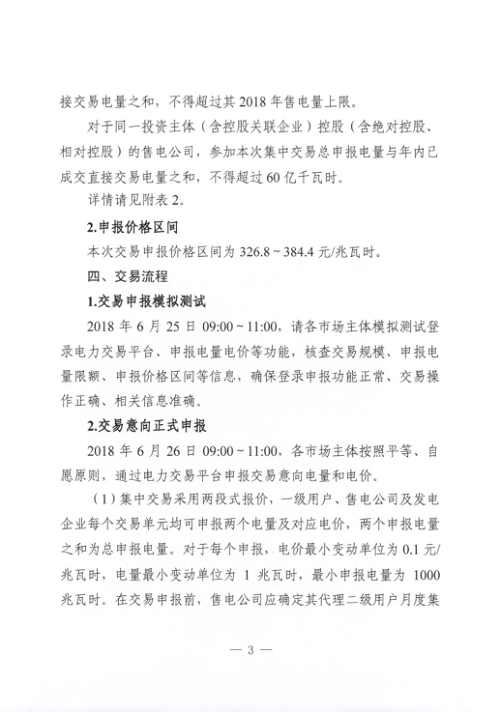 本次交易規(guī)模為100萬兆瓦時,對于同一投資主體(含控股關(guān)聯(lián)企業(yè))控股(含絕對控股,相對控股)的售電公司,參加本次集中交易總申報電量與年內(nèi)已成交直接交易電量之和,不得超過60億千瓦時。