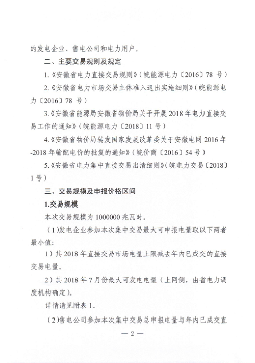 安徽電力交易中心日前發(fā)布了《關(guān)于開展安徽省2018年7月份電力集中直接交易的市場公告》,擬于2018年6月25日-6月27日組織開展安徽省2018年7月份電力集中直接交易。