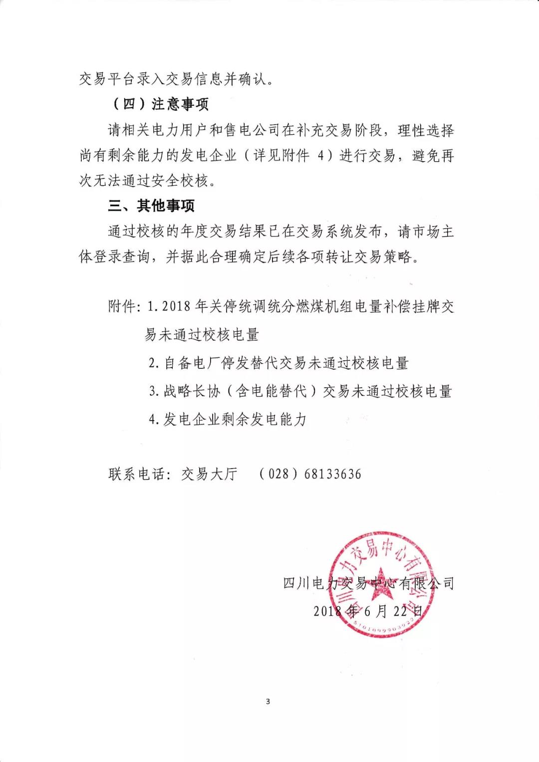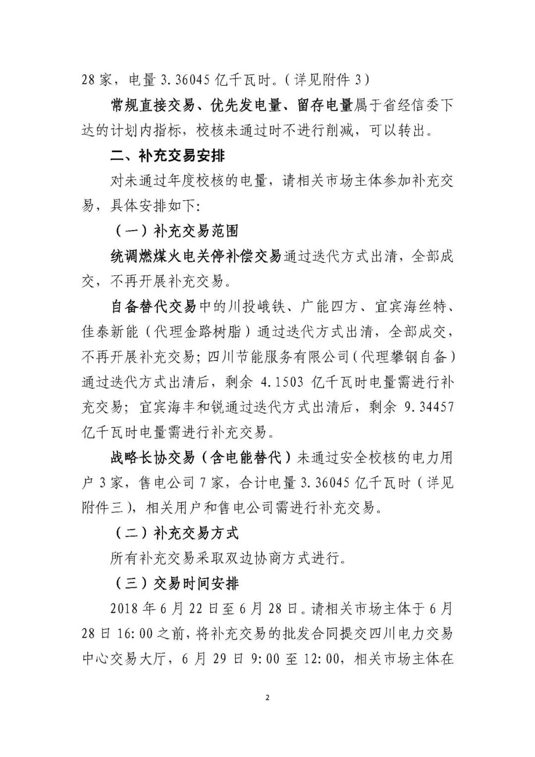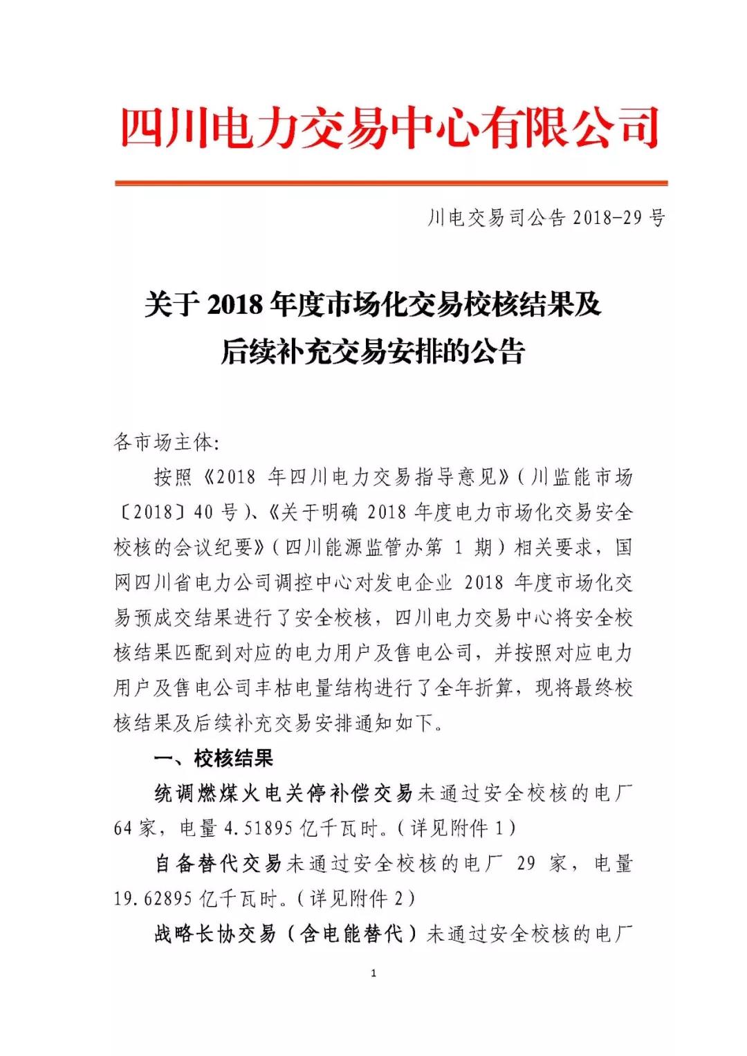 四川關(guān)于2018年度市場化交易校核結(jié)果及后續(xù)補充交易安排的公告