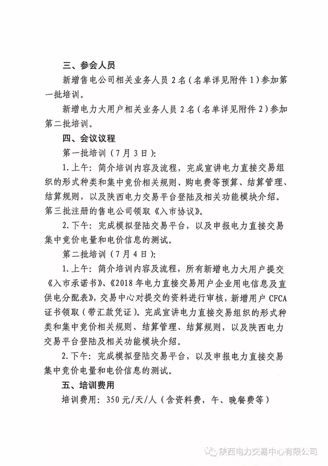 陜西電力交易中心有限公司關(guān)于召開陜西省2018年下半年電力直接交易培訓(xùn)會(huì)議的通知