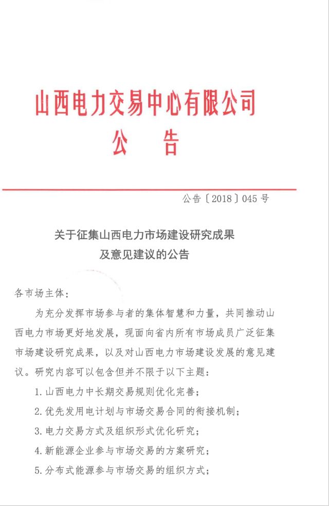 山西發(fā)布征集電力市場建設(shè)研究成果及意見建議的通知