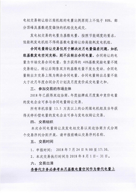 江蘇2018年8月份發(fā)電企業(yè)合同電量轉(zhuǎn)讓及發(fā)電權(quán)交易