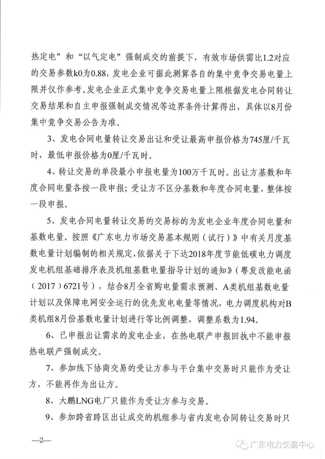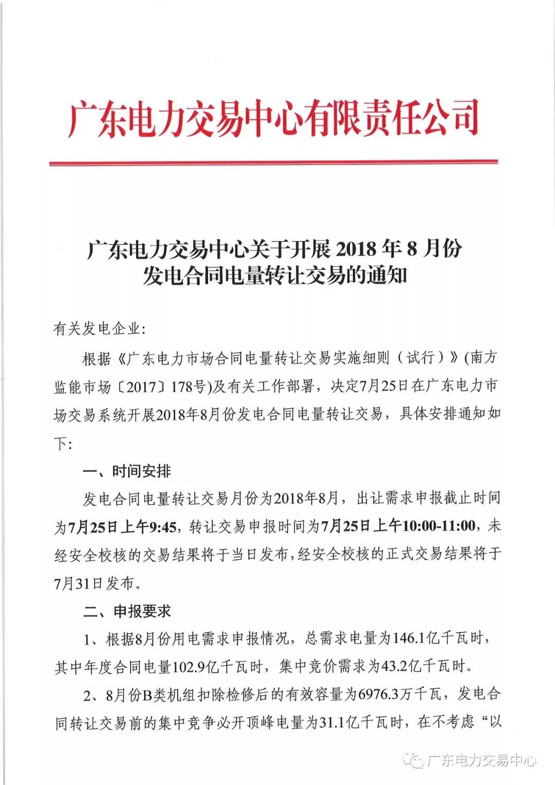 通知 | 廣東關(guān)于開展2018年8月份發(fā)電合同電量轉(zhuǎn)讓交易的通知