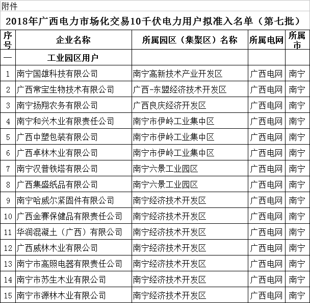 關(guān)于擬列入2018年廣西電力市場化交易10千伏電力用戶準(zhǔn)入名單(第七批)的公示