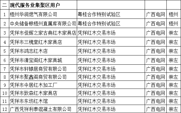 另外,經(jīng)進(jìn)一步核實(shí),第四、六批中憑祥紅木交易市場集聚區(qū)內(nèi)的憑祥市金馬紅木家具店、憑祥市森欣紅木有限公司、憑祥市得順商貿(mào)有限公司等3家企業(yè)供電電壓等級不足10千伏,暫不符合交易準(zhǔn)入條件。