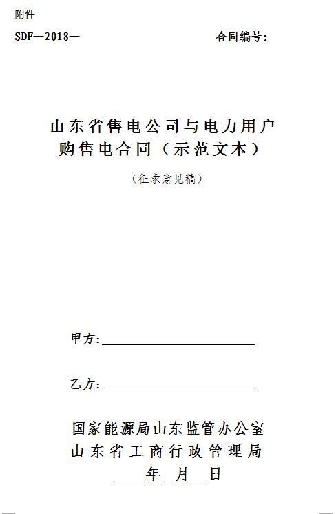 關(guān)于《山東省售電公司與電力用戶購售電合同(示范文本)》(征求意見稿)公開征求意見的公告