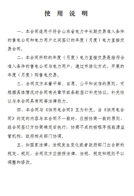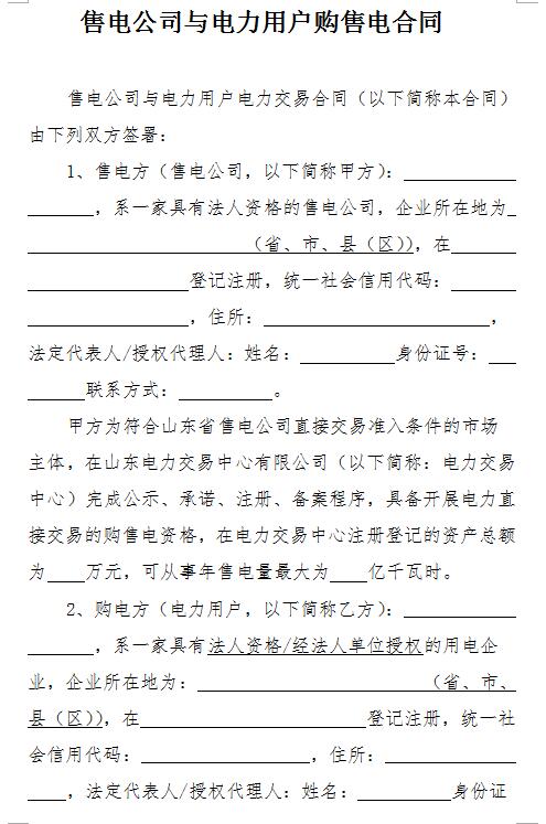 山東發(fā)布《售電公司與電力用戶購售電合同(示范文本)》(征求意見稿)