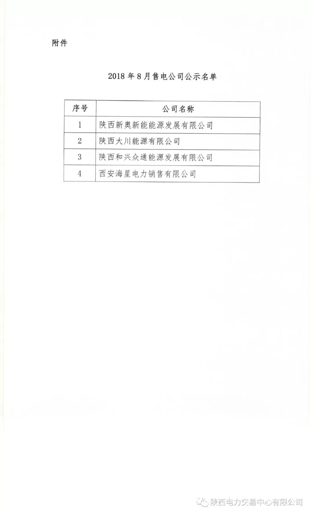 陜西電力交易中心有限公司關(guān)于公示2018年8月受理注冊的售電公司相關(guān)信息的公告