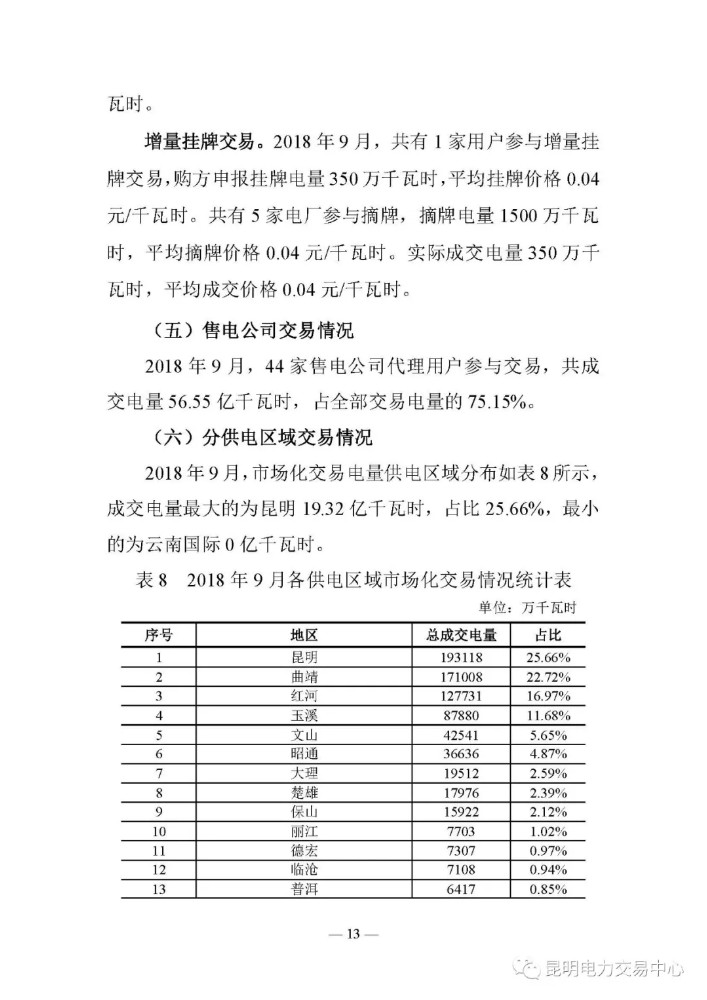 云南2018年9月電力交易月報:44家售電公司代理用戶參與交易